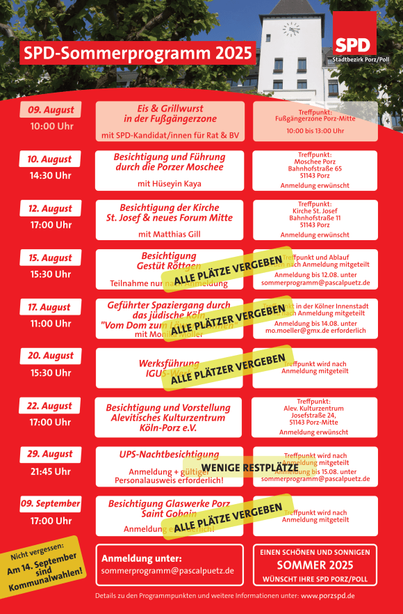Aufgrund der extrem hohen Anmeldezahlen arbeiten wir aktuell alle eingegangenen Anmeldungen ab. Alle, die sich angemeldet haben, erhalten selbstverständlich noch eine Rückmeldung – teilweise sogar noch heute, insbesondere mit Blick auf die morgige Moscheeführung.