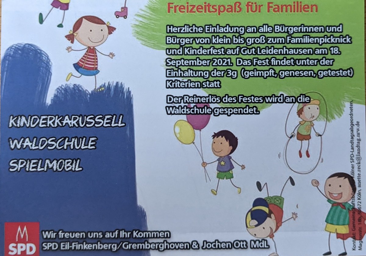 Herzliche Einladung zum Kinderfest und Familienpicknick auf Gut Leidenhausen an alle Bürgerinnen und Bürger!