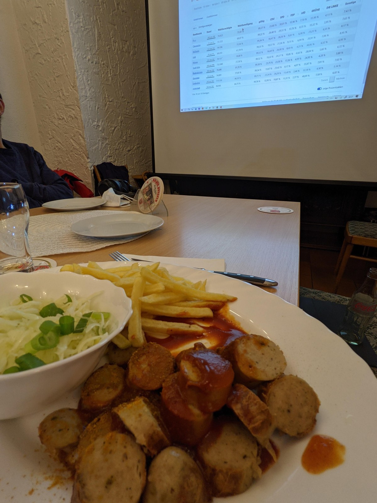 Bei bester #Currywurst im Gasthaus Kranz haben wir gemeinsam die Ergebnisse der Bundestagswahl für unsere Stadtteile Eil, Finkenberg und Gremberghoven analysiert. Wir sind zufrieden! Sanae Abdi konnte den Wahlkreis gewinnen und vertritt uns nun in Berlin.