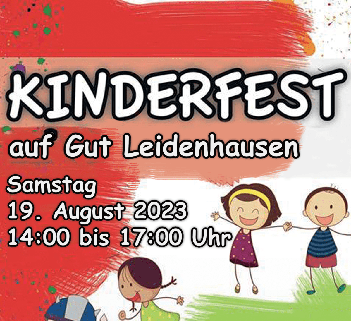 Herzliche Einladung zum Kinderfest und Familienpicknick auf Gut Leidenhausen an alle Kinder und Bürgerinnen & Bürger.