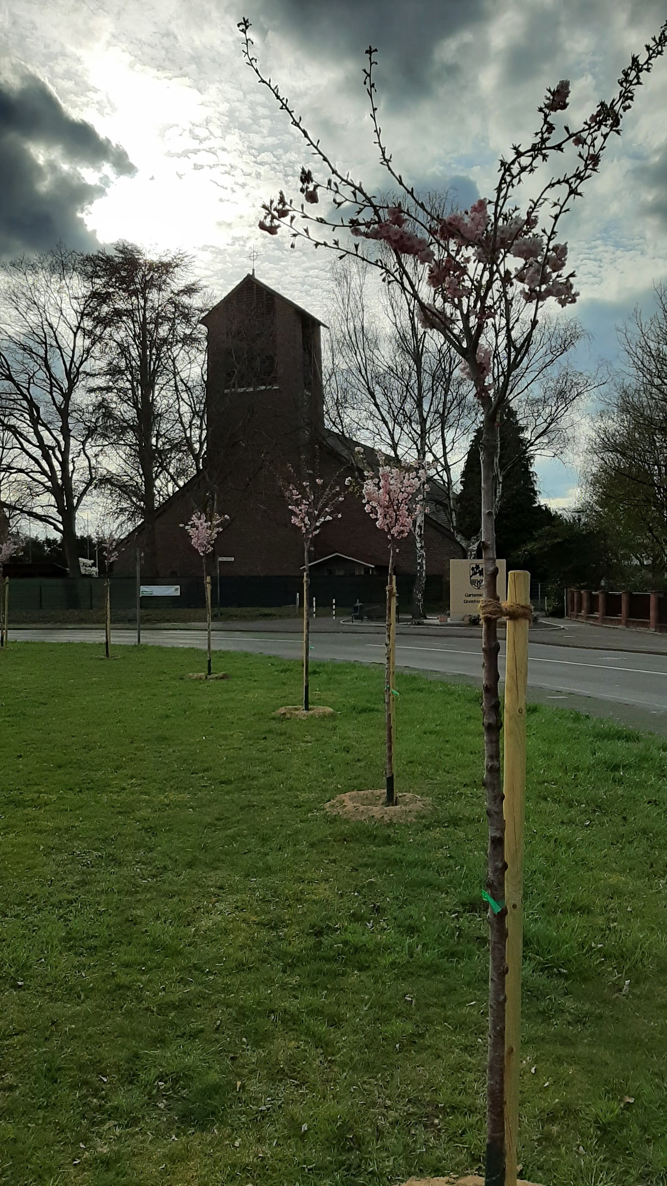 An verschiedenen Stellen im Stadtteil blühen nun zum ersten Mal die neuen Kirschbäume und bilden im Zentrum eine Mini-Allee. Bisher ein wunderschöner Erfolg.